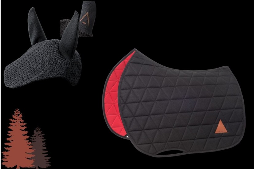 Black technical and eco-friendly set for horses: black EXCEL-ANSE saddle pad and INFI-KNIT black ear net with a brown A BLACK is BLACK! The great classic of our range that suits everyone! The saddle pad is breathable, durable and machine washable at 30°C. The exceptionally ergonomic ear bonnet is black with a brown A logo on the back of the ear. Knitted in 3D, it stays perfectly in place on the horse's head and can be washed in the washing machine. Combine innovation, sustainability and French manufacturing to treat yourself for Christmas.
