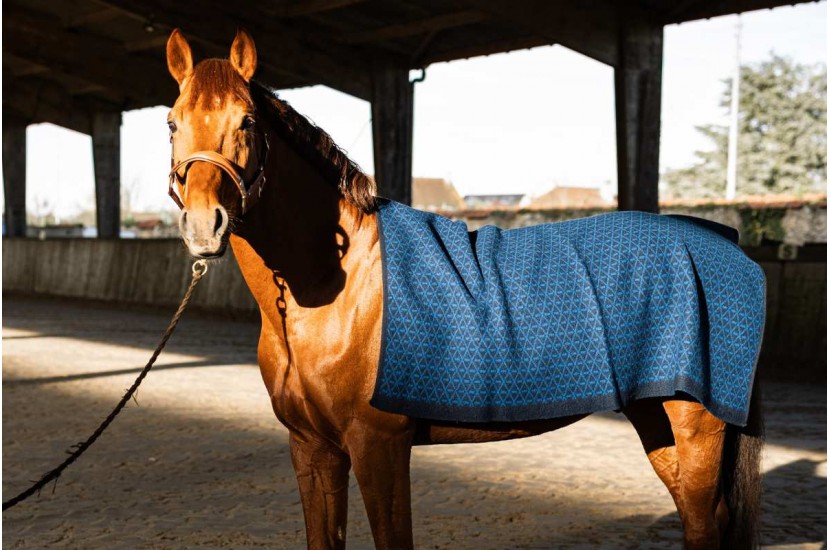 There's nothing like virgin wool to keep your horse warm. We chose virgin wool not only for its thermoregulatory properties but also for its ability to wick away moisture. Your horse stays dry! This multipurpose blanket can therefore be used as a stable sheet, an exercise rug, or as a cooler rug. Its soft mesh structure makes it easy to handle, on foot or on horseback. Like our entire INFI-KNIT range, our wool squares are knitted in France. They can be machine washed at 30°C on a wool programme.