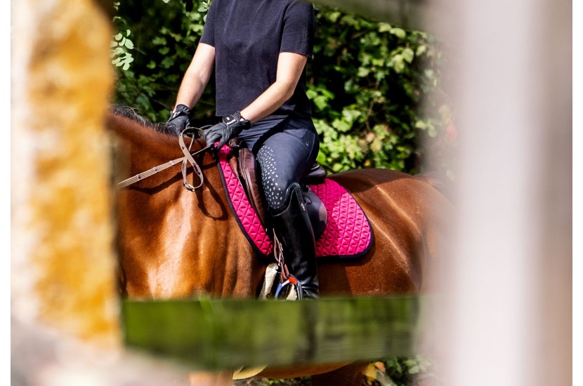 General purpose INFI-KNIT saddle pad in pink and grey is a TACANTE innovation. It is the first environmentally responsible general purpose saddle pad 3D-knitted in one single piece. Its knitted structure ensures optimum comfort for the back of your horse. It is breathable and dries quickly be it after work or straight out of the washing machine.